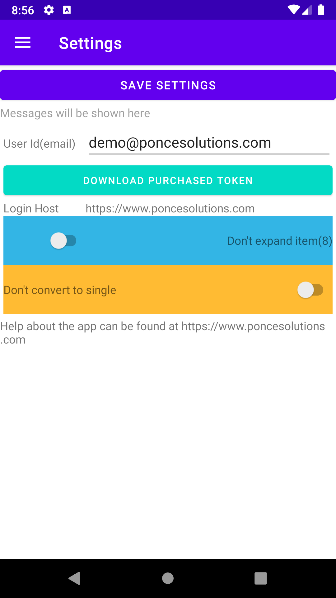 Once you have purchased the token, you can enter the email that you used into the User Id(email) field, tap Save Settings, tap .